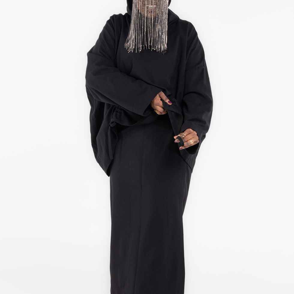 Pull à col haut montant souple et retroussable à manches larges. Lacets ajustables à l'avant pour un style personnalisé et unique.
