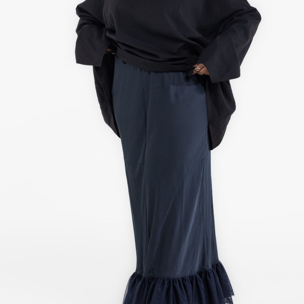 - Jupe longue avec une coupe droite et légèrement évasée en bas